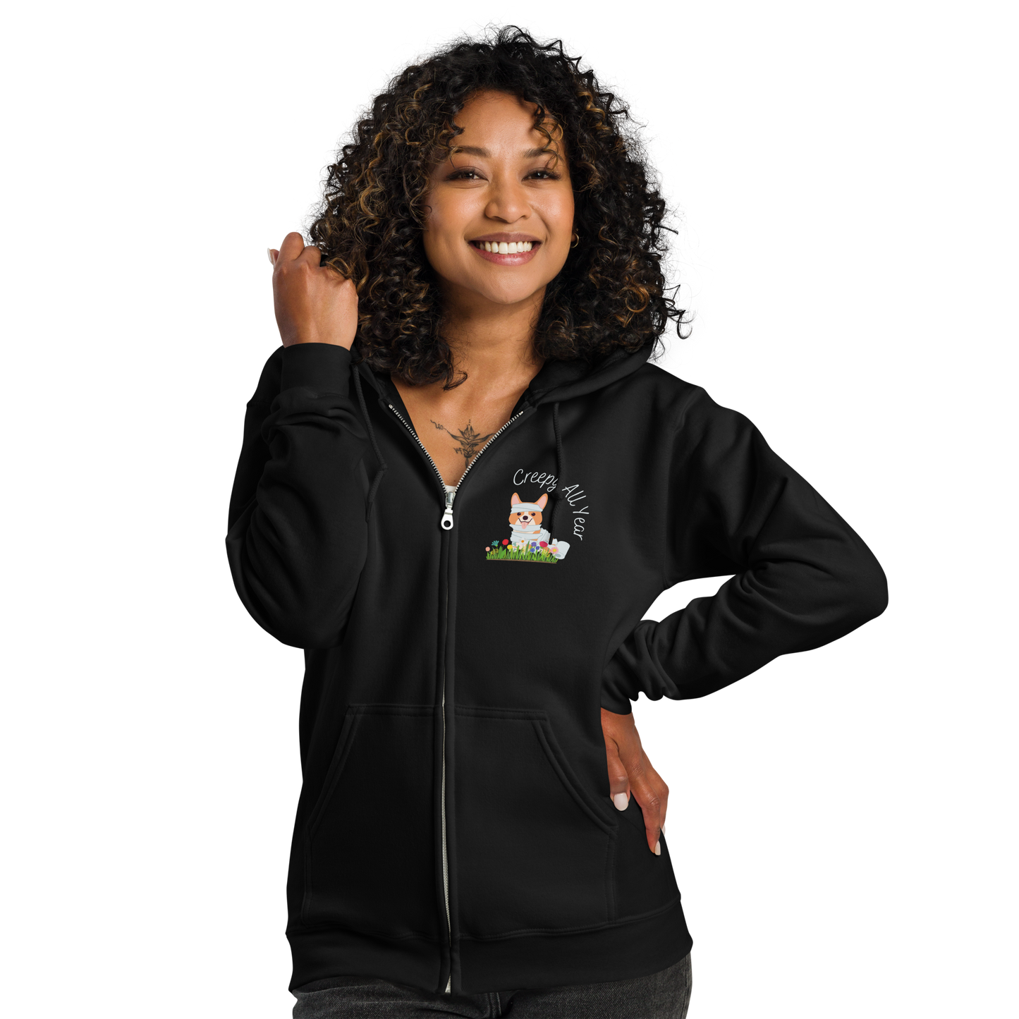 Designed with style and comfort in mind, this hoodie will quickly become your new favorite. Itâs made from soft fleece inside and outside, with a sturdy metal zipper, convenient front pockets, and a hood with color-matched drawstrings.