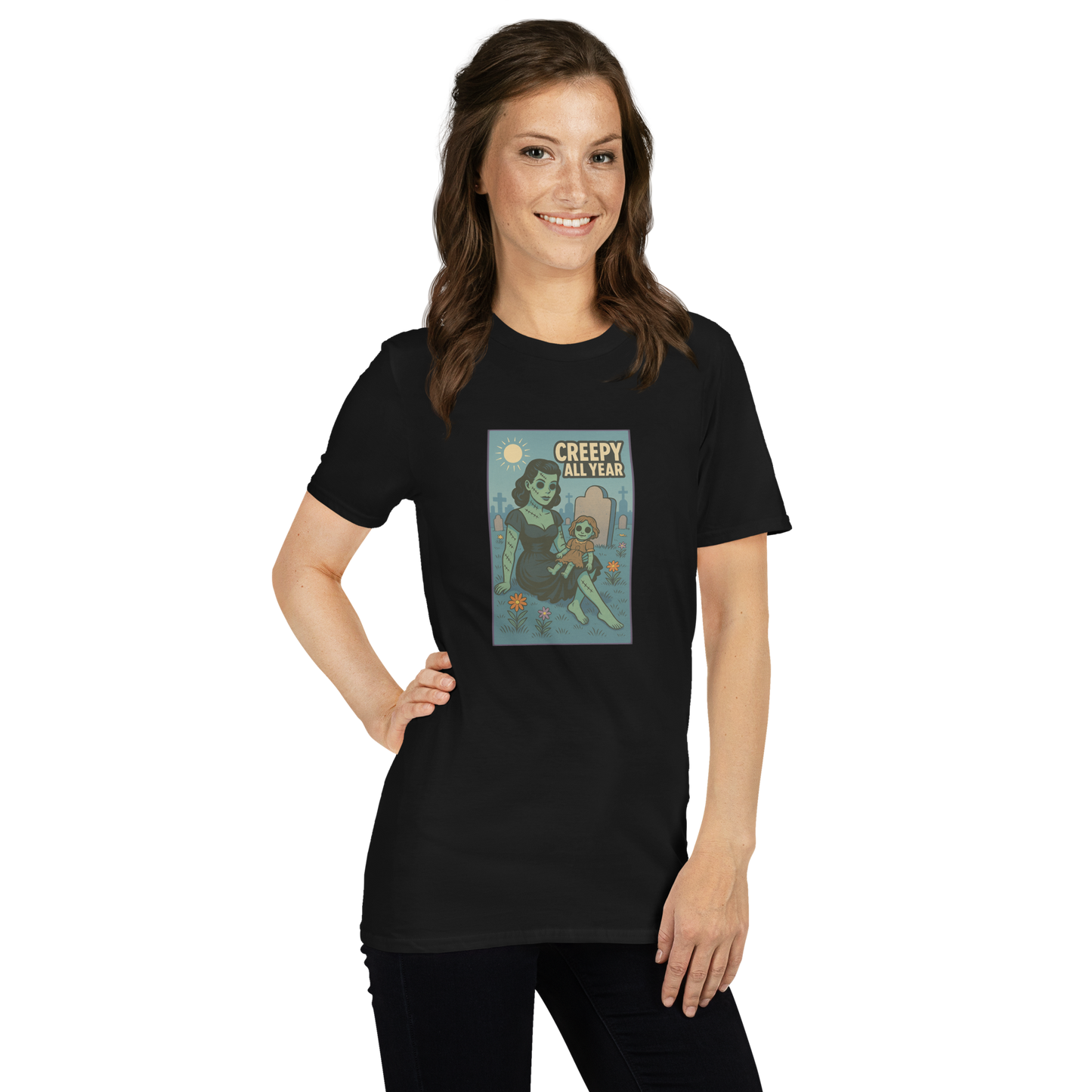 Snuggles from beyond the grave! 💀💐 Cemetery Cuddles, features a zombie mom and her doll soaking up the sun in their favorite haunted plot. It's sweet and stitched with love - perfect for those who keep it creepy all year. 🧵🖤👩👧
