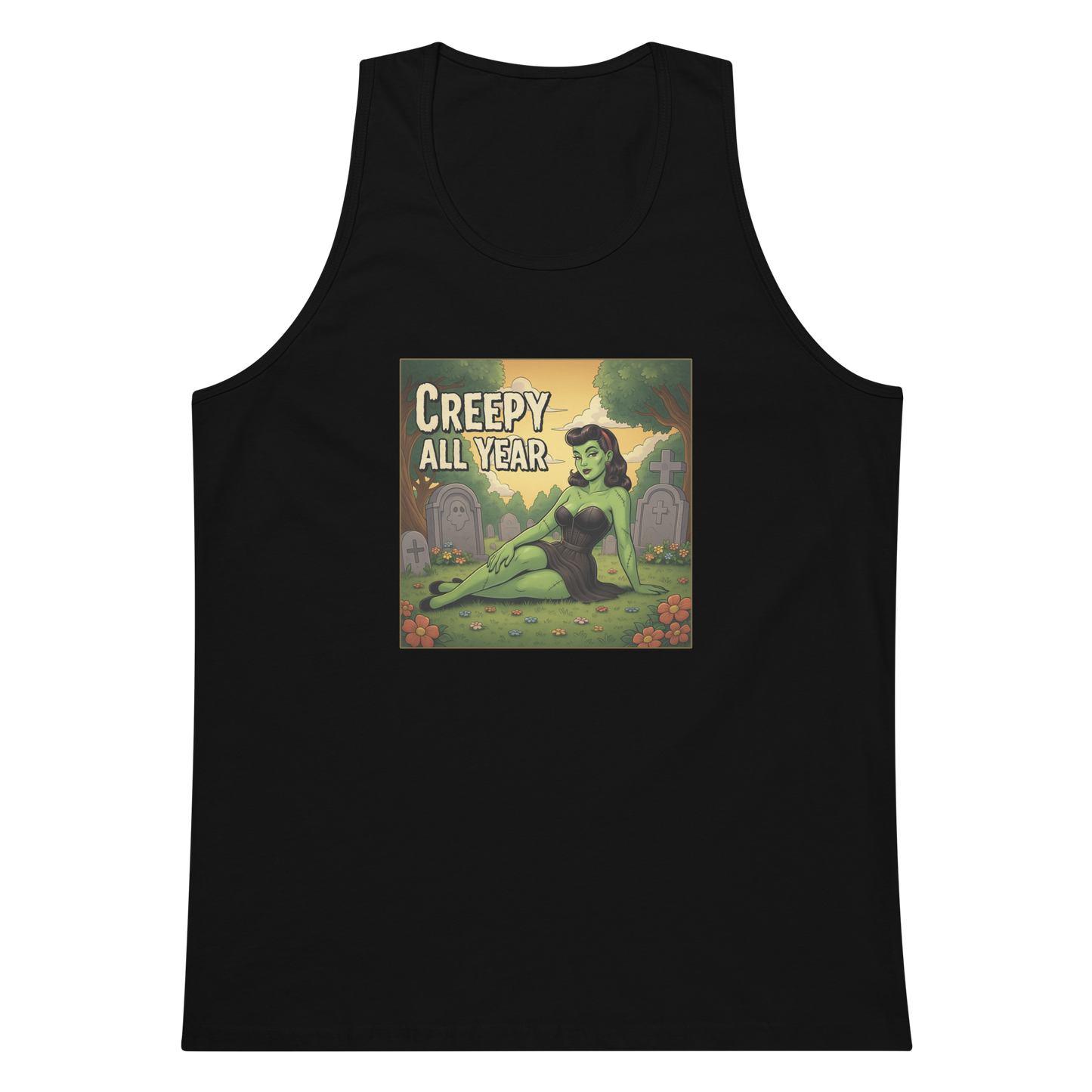 💀🌸 She’s drop-dead gorgeous and hauntingly serene, meet the Cemetery Siren, the undead queen of graveyard glam! Lounging among the tombstones with vintage flair and charm, she proves that creepy can be cute all year long. 🖤🪦
