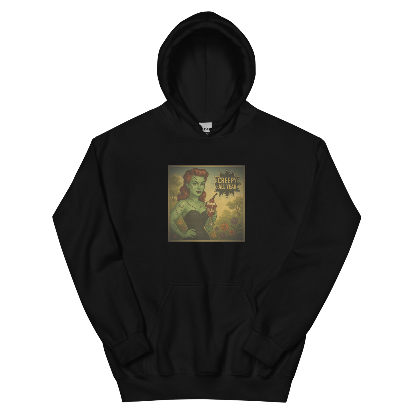 Scoop up some sweetness with Cherry on Top…of Horror 🍒🧟! This vintage pinup zombie queen is serving undead glam and gory dessert realness—complete with stitches, sass, and a cherry-drenched sundae. Creepy never looked so delicious!