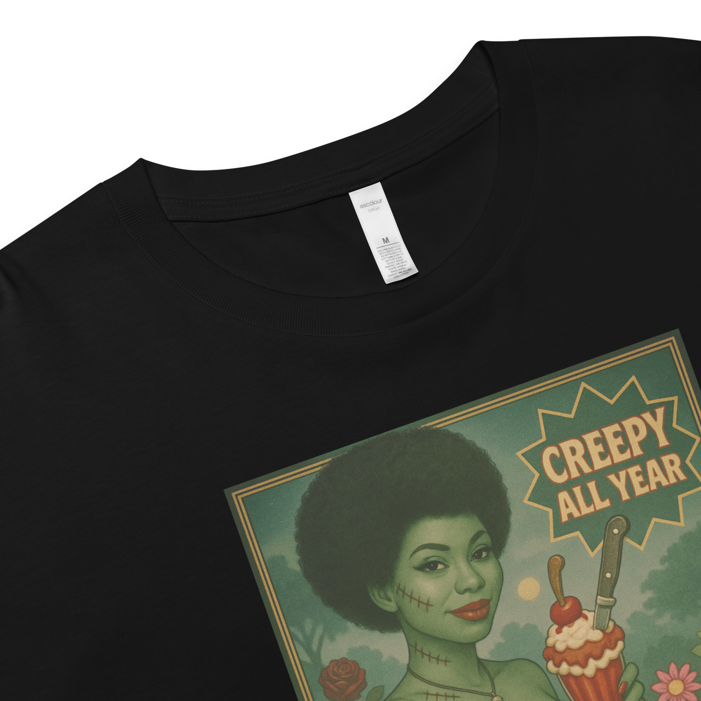 Serving up style with a side of creep, Cherry on Top…of Terror is a vintage-inspired scream queen treat! This glam green ghoul rocks a sundae topped with, you guessed it, a cherry, a knife, and a whole lot of charm. She's sweet, she's deadly, and she’s Creepy All Year. 🍒🔪👻
