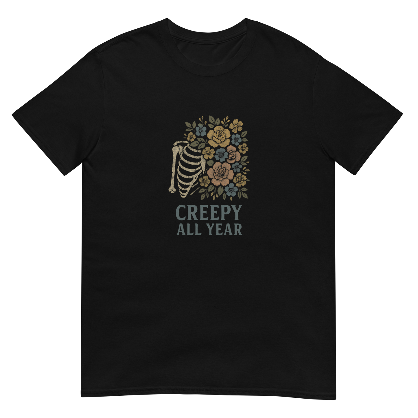 Death in Full Bloom 🌼 Where beauty meets bones - this hauntingly elegant design proves that creepy and floral are a match made in the underworld. Perfect for those who blossom best in the shadows.