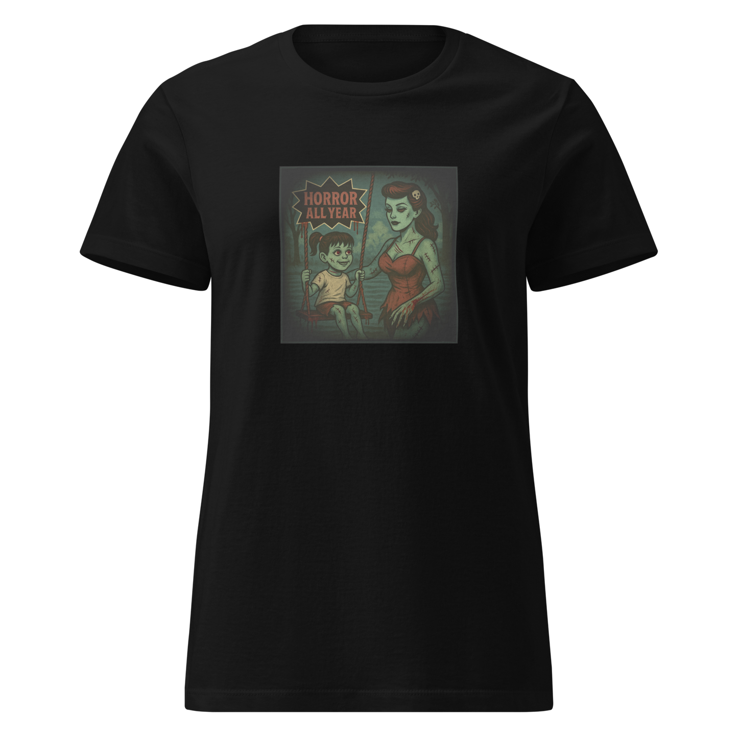 Some moms pack lunches, others pack a punch! 💀💋 In Mommie Deadest, mother-daughter bonding gets a creepy twist as this undead duo proves family time is forever… even beyond the grave. Whether it’s pushing swings or plotting scares, this zombie mama does it all, because horror runs in the family!