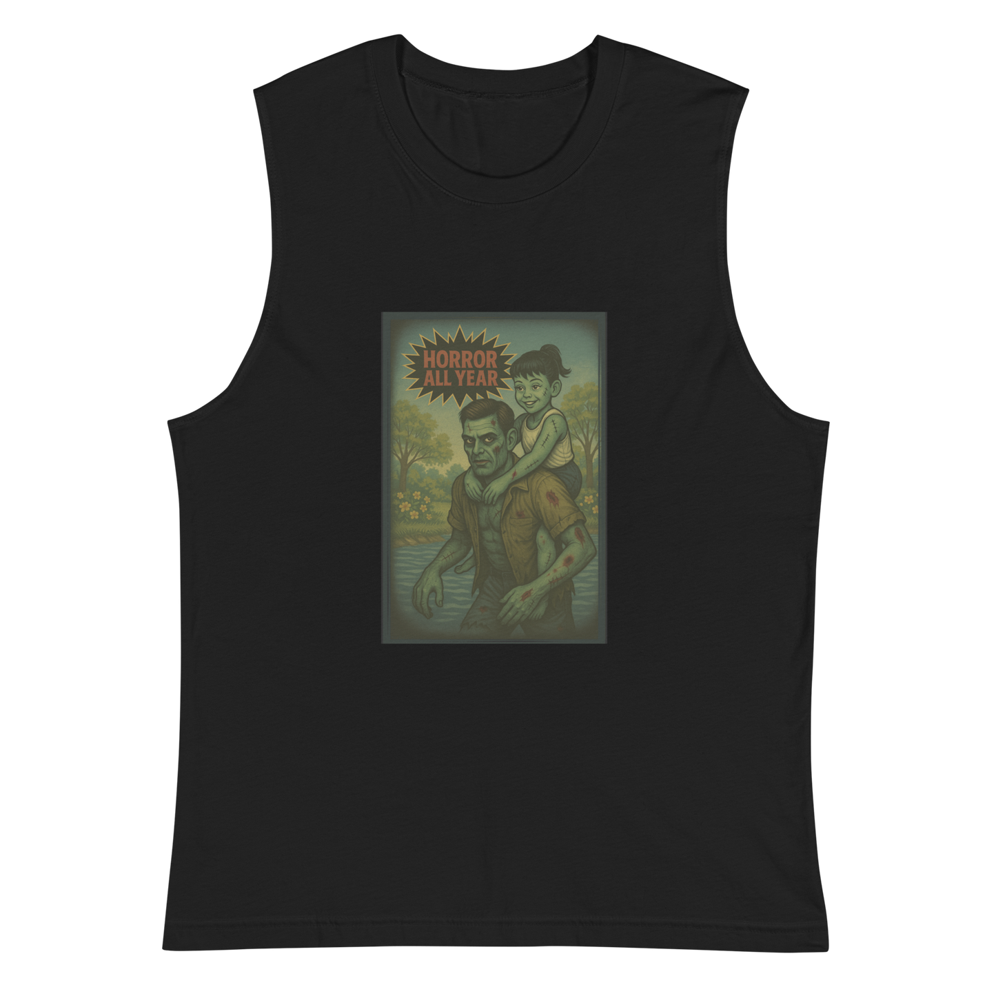 Who needs a pony when you’ve got a decomposing dad? In Rotten Ride, shoulder rides get a gory upgrade, complete with stitches, scowls, and swampy strolls. This undead duo is serving summer fun with a side of decay… because even the rottenest parents know how to carry their weight. 🧟💀🌼