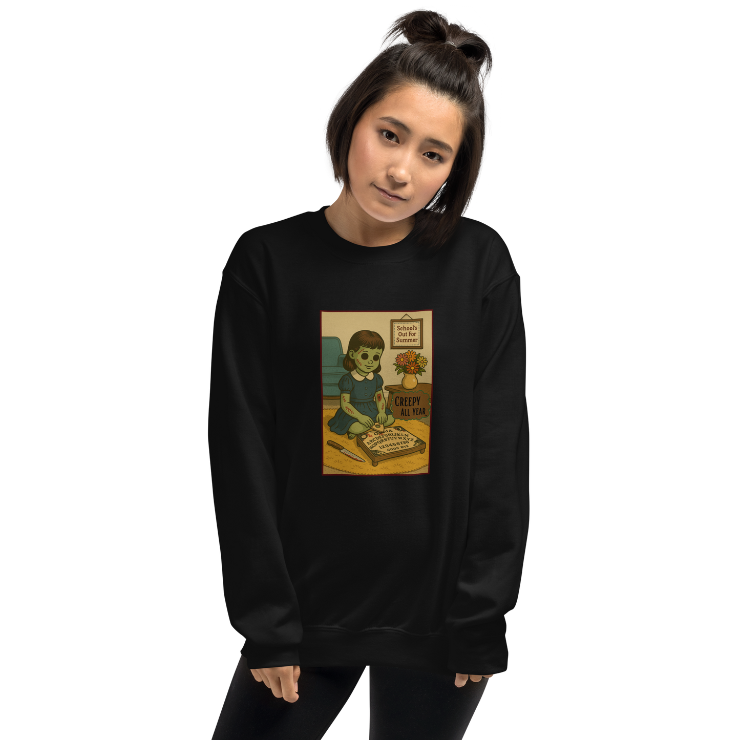This little ghoul just clocked out of school and into the spirit world. With her Ouija board ready and summer vibes strong, it’s playtime... with the paranormal. Summoning Starts Now 🔪📚👻✨