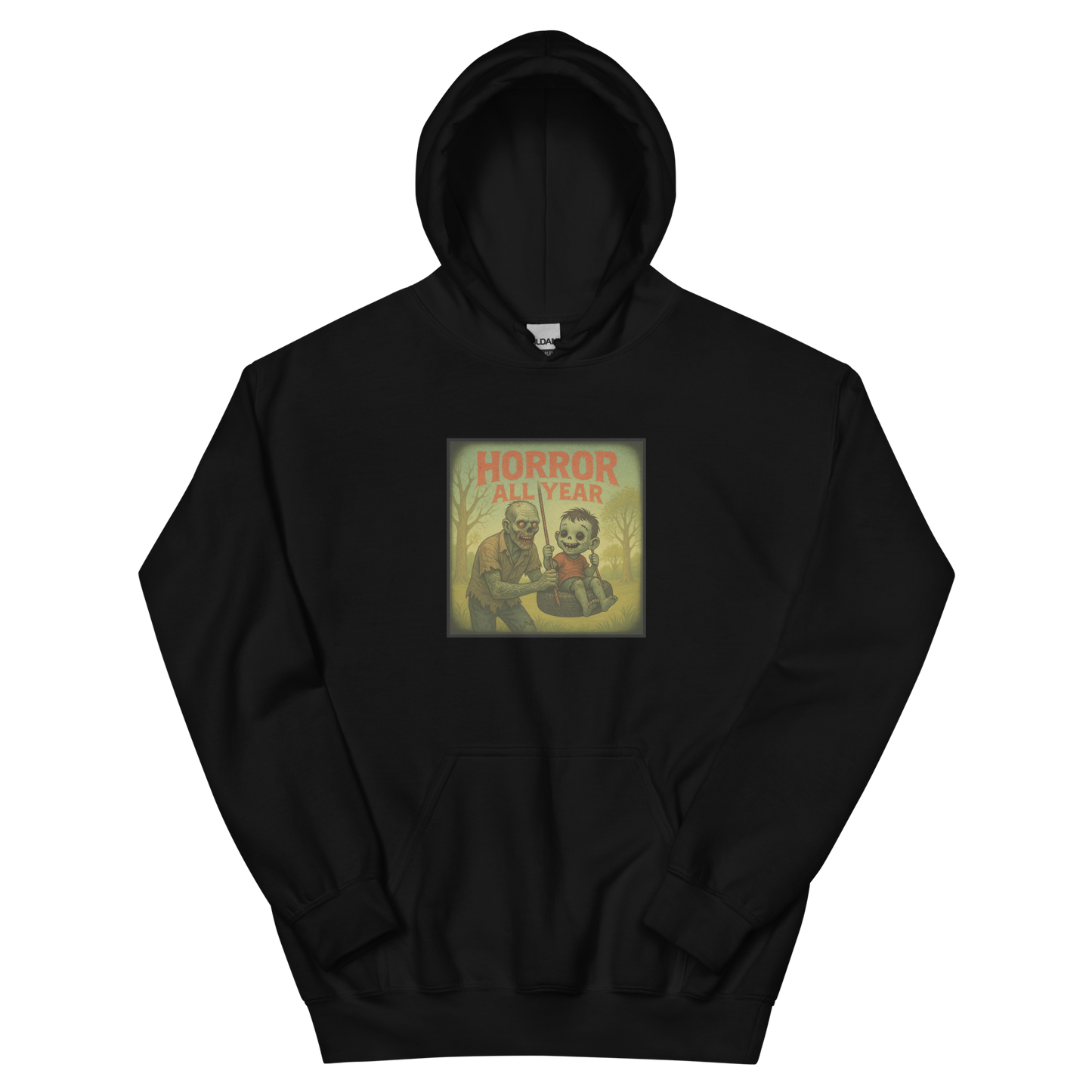 Fatherhood has never looked so frightfully fun! In Tattooed Terror & Mini Monster, this inked-up zombie dad and his creepy-cute kiddo are having a swinging good time, proving that the family that slays together, stays together. Tire swings, tombstones, and terror… just another day in the afterlife! 🧟🛞👻