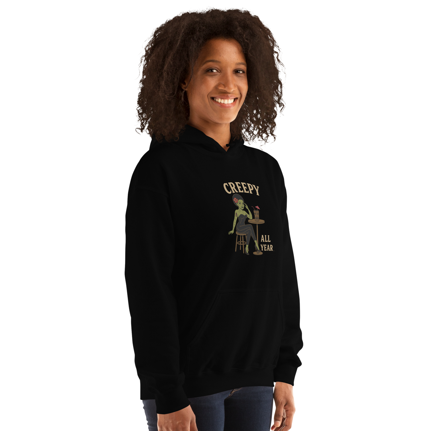 Raise a glass to Tiki Nights & Bites, where creepy meets classy under the moonlight! This undead beauty is stitched to perfection and ready for a night of frightfully fun sips and eerie vibes. Who says monsters don’t know how to party? 🌺💀🎉